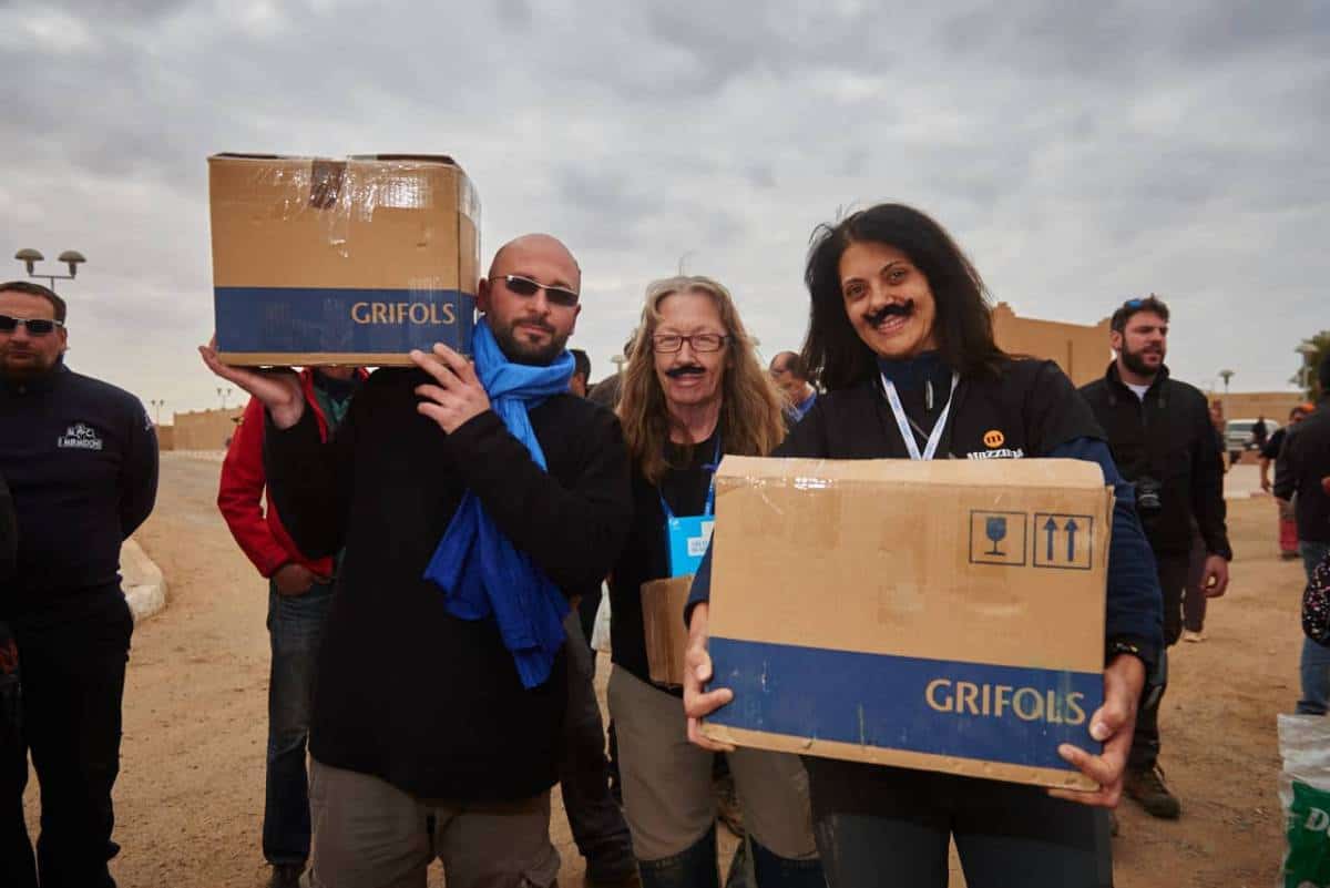 En la 5ª etapa hicimos un alto en el pequeño poblado de Hassi Labiad en los alrededores de Merzouga, donde la ONG local del mismo nombre lleva a cabo una importante labor para los niños y las mujeres de 6 poblaciones de los alrededores. Tanto Maroc Challenge como sus participantes colaboran con esta ONG en dos ámbitos principales de trabajo: la educación y salud de los niños y niñas de entornos rurales, así como la alfabetización de las mujeres y su posterior integración en el mundo laboral, para así mejorar sus vidas y las de sus familias. Nuestra capacidad para transportar material a Marruecos es muy importante, por lo que en muchas casos necesitan nuestra ayuda para llevar material imprescindible para llevar a cabo su labor, aunque en nuestro caso los amortiguadores se resentían del sobrepeso. Y de paso, jugamos con los niños del pueblo que nos desafiaron, a que como mujeres no éramos capaces de llevar un bigote que un participante repartía entre ellos. A la vista está a que si y había muchas risas sobre todo entre las niñas.